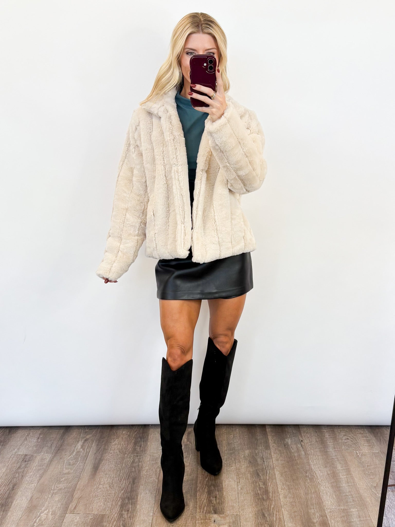 Wrap yourself in effortless elegance with this ultra-soft faux fur jacket — the perfect layer to elevate any cold-weather look. Designed with a plush, velvety texture and a relaxed silhouette, this jacket delivers both warmth and chic style without the bulk. Whether you’re dressing up a night-out outfit or adding a luxe touch to your everyday denim, it’s the statement layer your winter wardrobe needs.