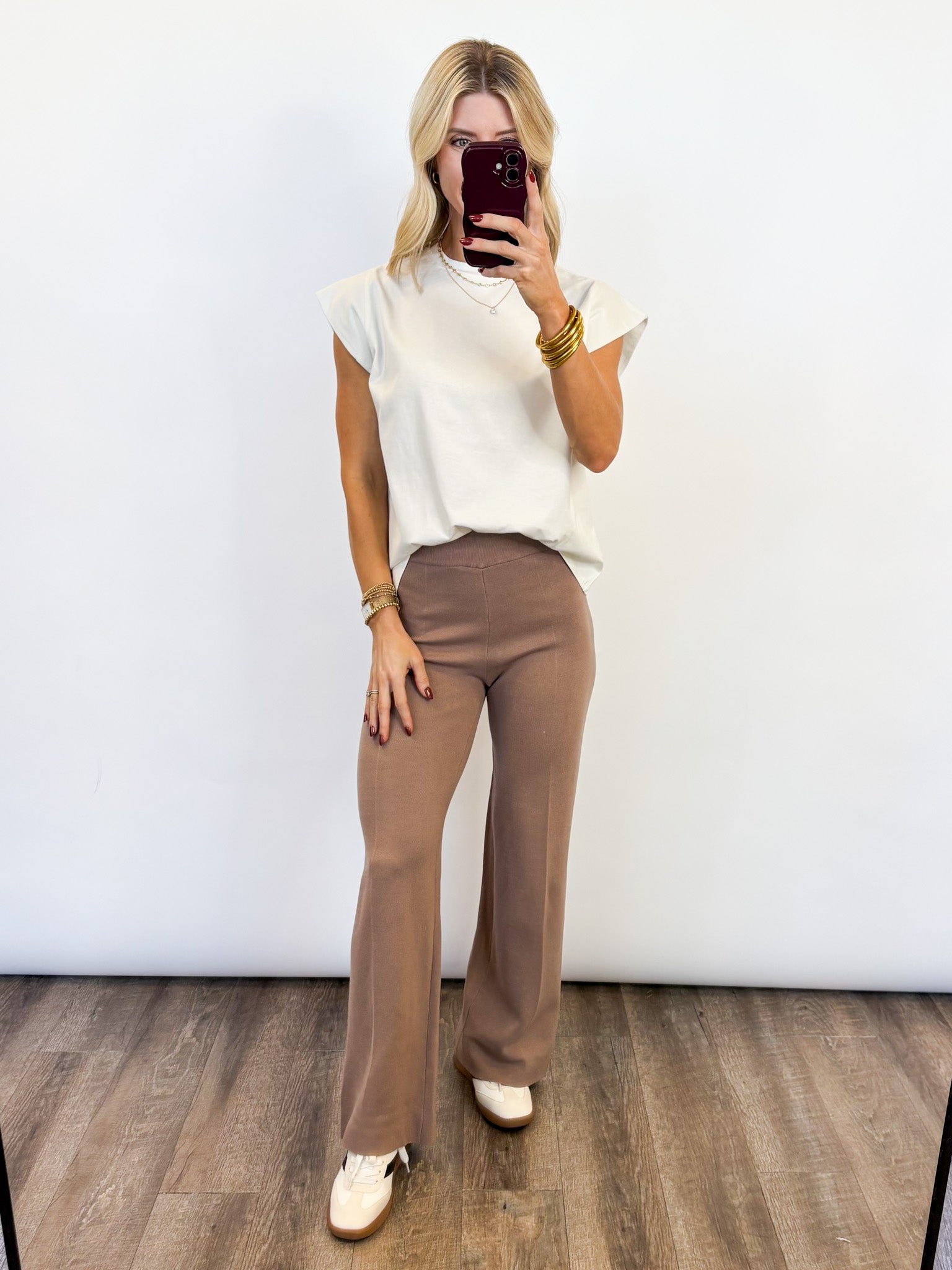 Meet your new go-to for effortless comfort and elevated style. These ultra-soft taupe sweater pants feature a relaxed straight-leg fit with subtle side slits at the hem, giving them a modern, flowy silhouette that moves beautifully with you. Designed with a smooth stretch waistband, they offer all-day comfort without sacrificing polish — perfect for lounging at home or styling up for errands and brunch.