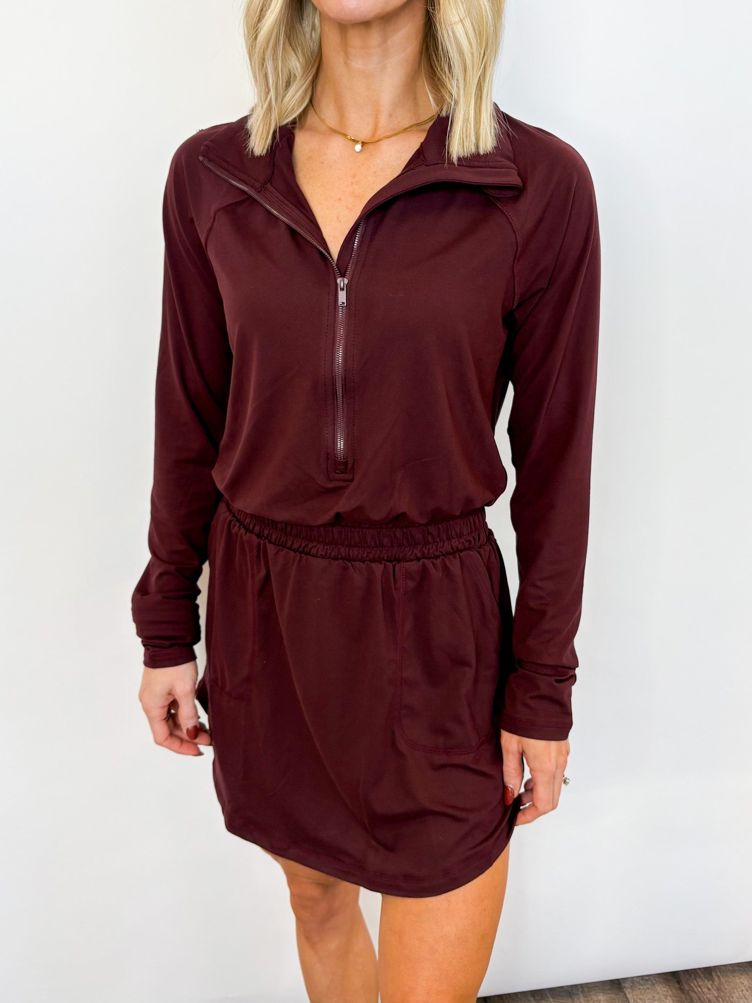 Meet the dress that keeps up with your lifestyle—cute, sporty, effortless, and made for all-day movement. Designed with a flattering elastic waistband, a half-zip neckline, and a relaxed skirt, this active dress blends comfort and style in the best way. Whether you're running errands, heading to brunch, or staying comfy on travel days, this piece has you covered.