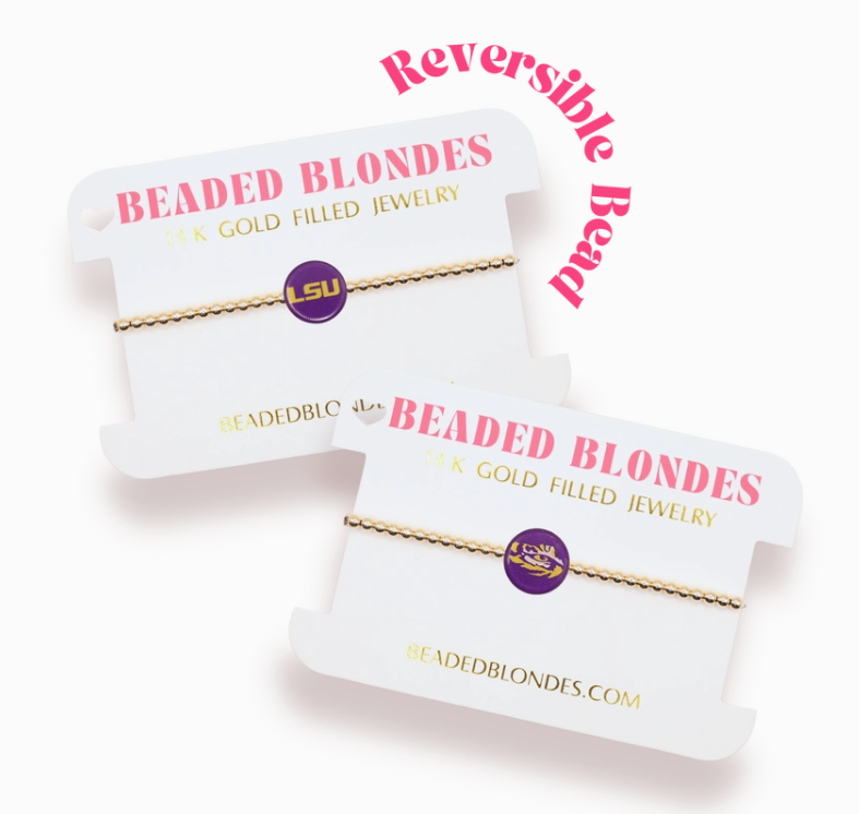 Officially licensed LSU double-sided logo bracelet with 3mm gold-tone beads