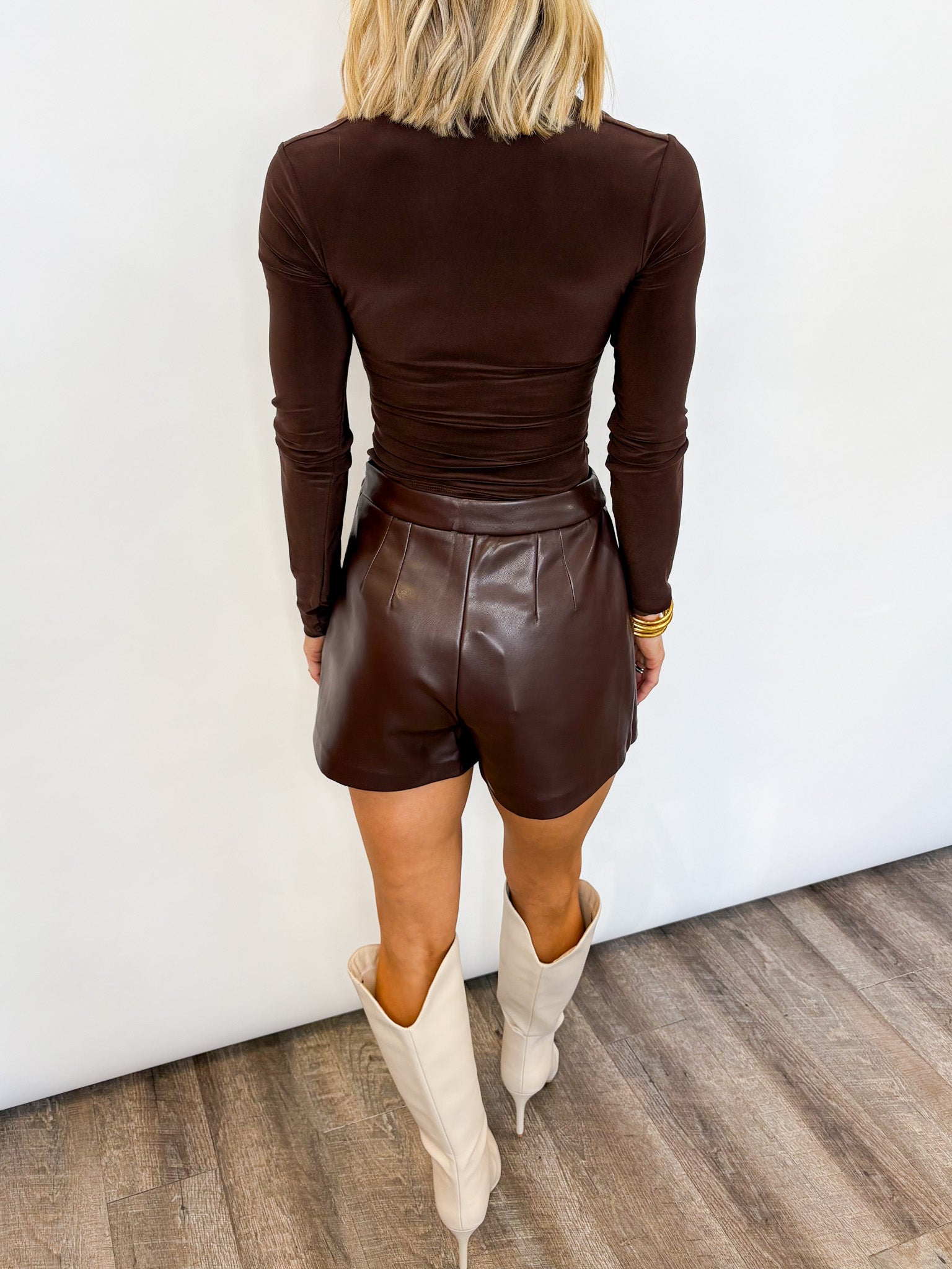 Sleek, sophisticated, and endlessly flattering — the Luna Drape Top is your go-to for elevated nights out. Designed in a soft, stretch knit fabric, this black long-sleeve top features a subtle draped neckline that adds dimension and a touch of allure. The fitted silhouette hugs your shape while keeping things classy, making it the perfect piece to pair with high-waisted denim or faux leather pants.
