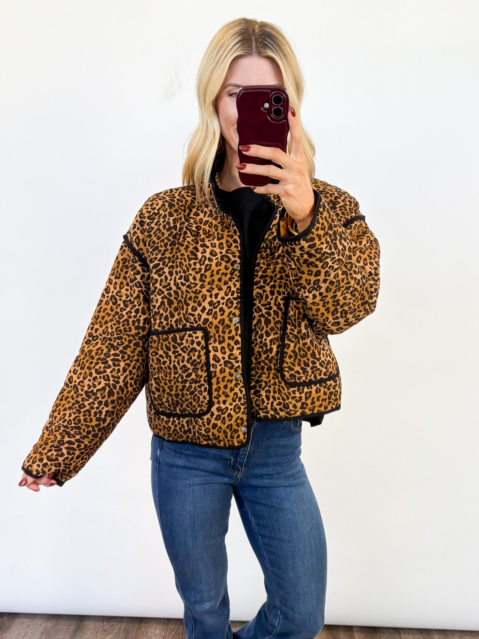 Step out in fierce style with the Wild Side Leopard Puffer Jacket. Designed to keep you warm without sacrificing edge, this jacket combines cozy comfort with a statement-making print. Perfect for layering, it’s the ultimate blend of functionality and fashion.