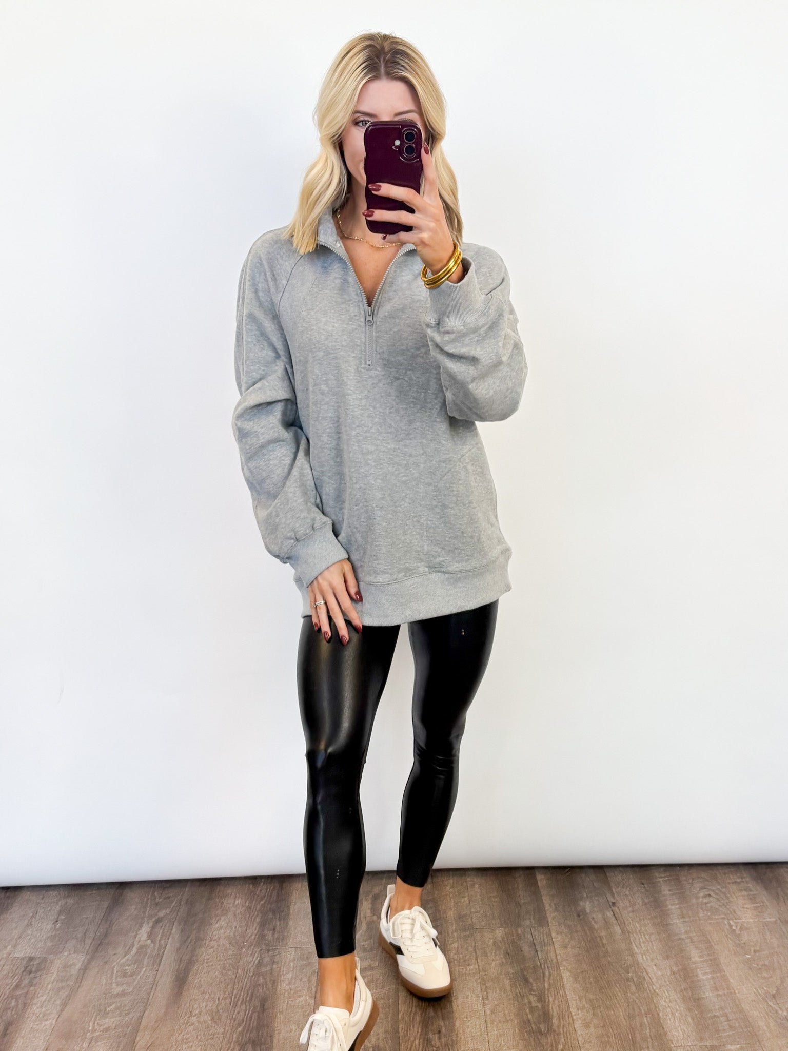 We love an easy look that is effortlessly chic, and this pullover is just that! Our Zipper Pullover is perfect to throw on and go with leggings or jeans. This pullover features a soft lining, half front zipper, and pockets. Pair if with your cute sneakers and your're ready to go! Fit is true to size.